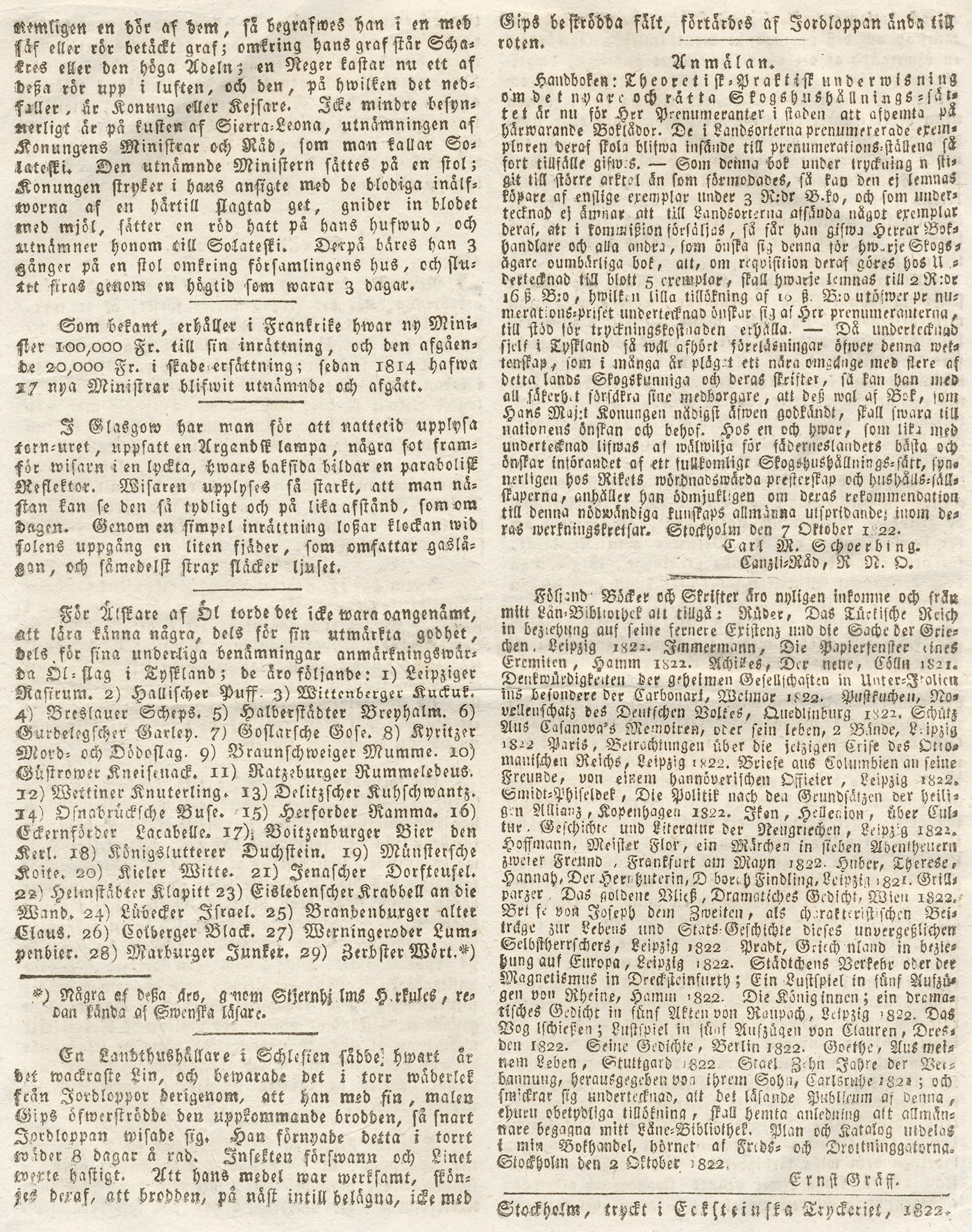 Allmänna Journalen N:o 237 1822-10-11. Allmänna Journalen är ett exempel ur 1800-talets tidningsflora. För att söka i tidningar kan man orientera sig i Bengt Lundstedts Sveriges periodiska litteratur för tiden 1645-1899 och i Sven Tollins Svensk Dagspress 1900-1967. Dessutom finns en rad databaser, t ex Artikelsök.