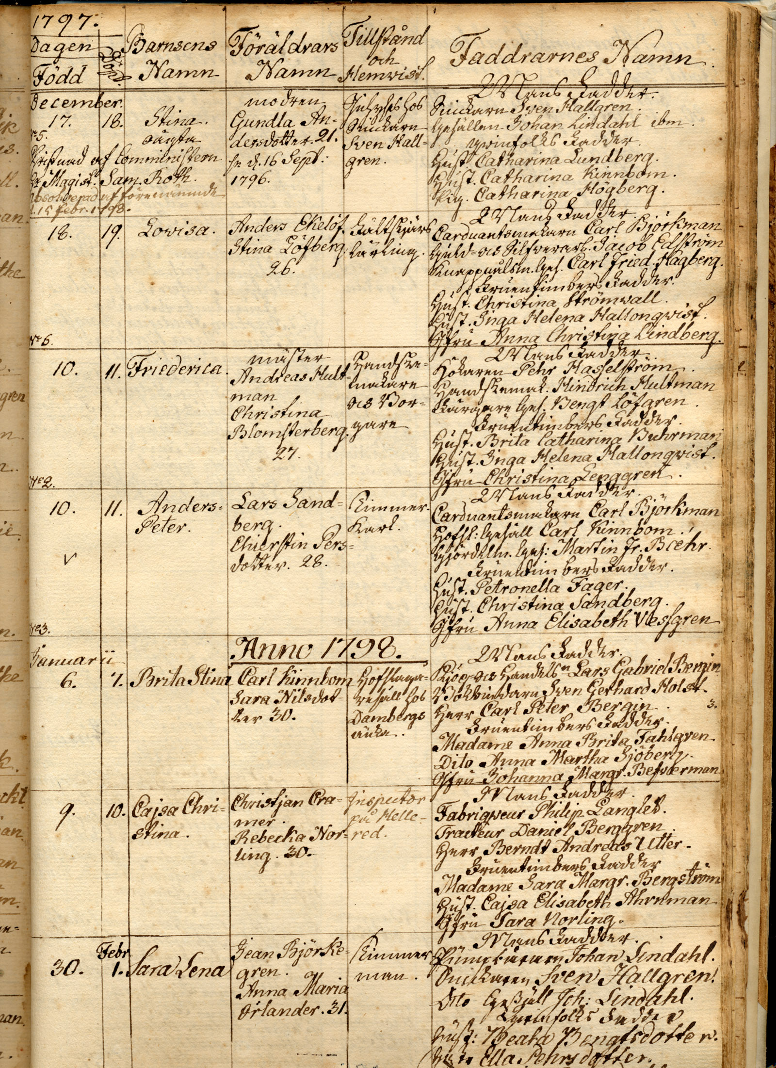 Mans Fadder Carduantsmakar Carl Björkman Guld- och Silfwerarb Jacob Edström Knappnålsm. Ges.Carl Fried Hagberg Fruentimbers Fadder Hust. Christina Strömwall Hust Inga Helena Hallonqvist Jfru Anna Christina Lindberg