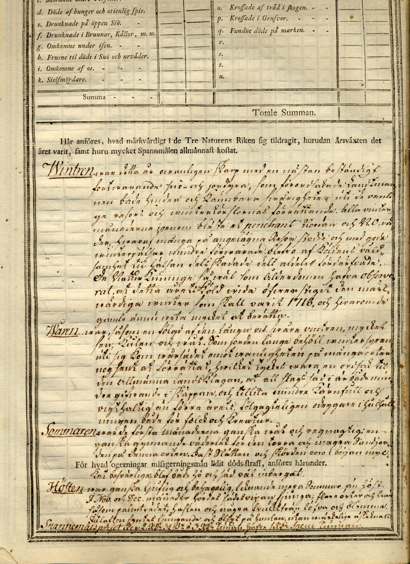 Wåren war, såsom en fölgd af den långa och swåra wintren, mycket