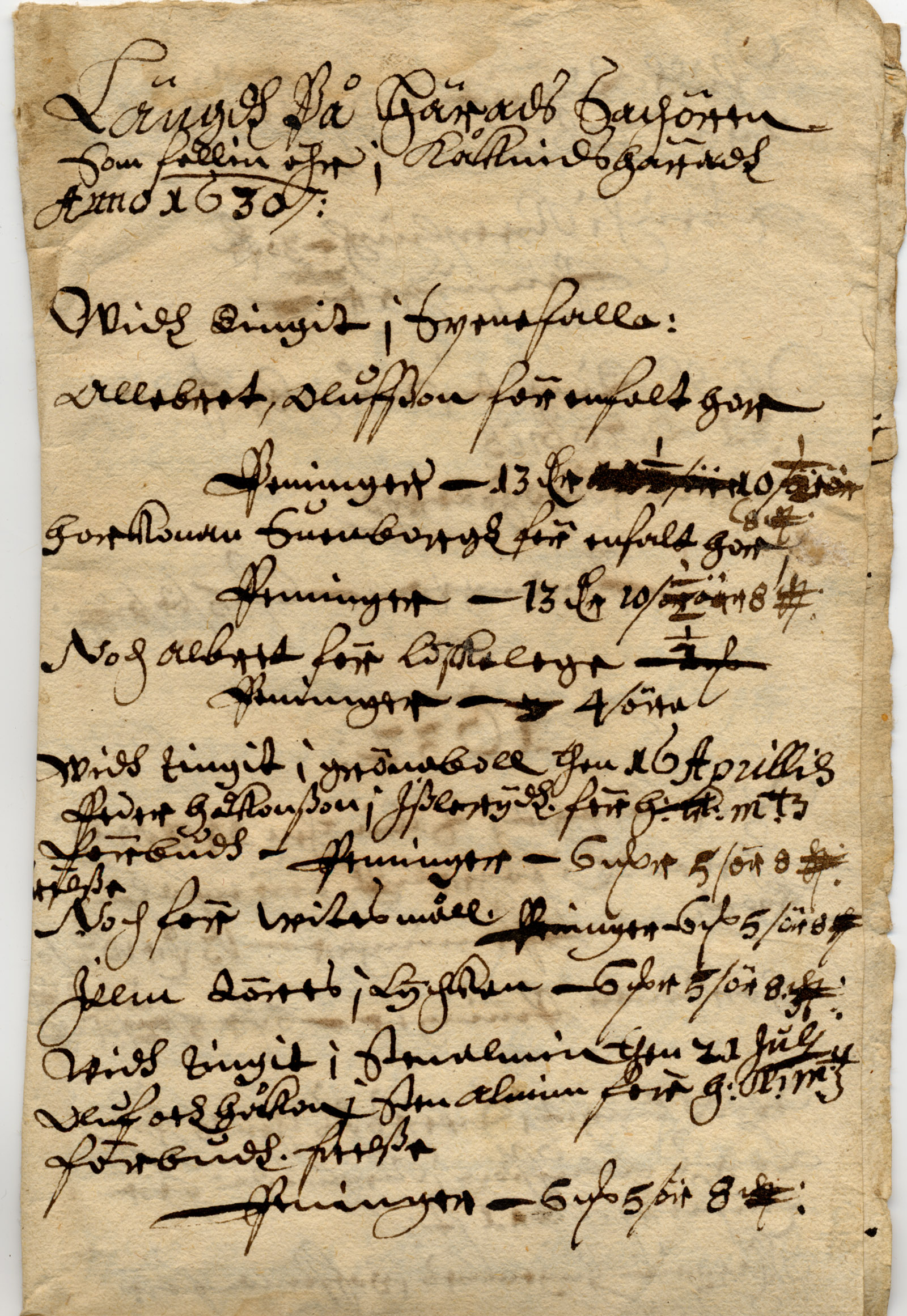Saköreslängd 1630 (Kåkinds Häradsrätts saköreslängd C VII: 1) Saköreslängd över utdömda böter upprättades efter varje ting och utgör i viss mån en längd över mål och kan användas som sökhjälp. Saköreslängden är ofta inhäftad i slutet av varje dombok.