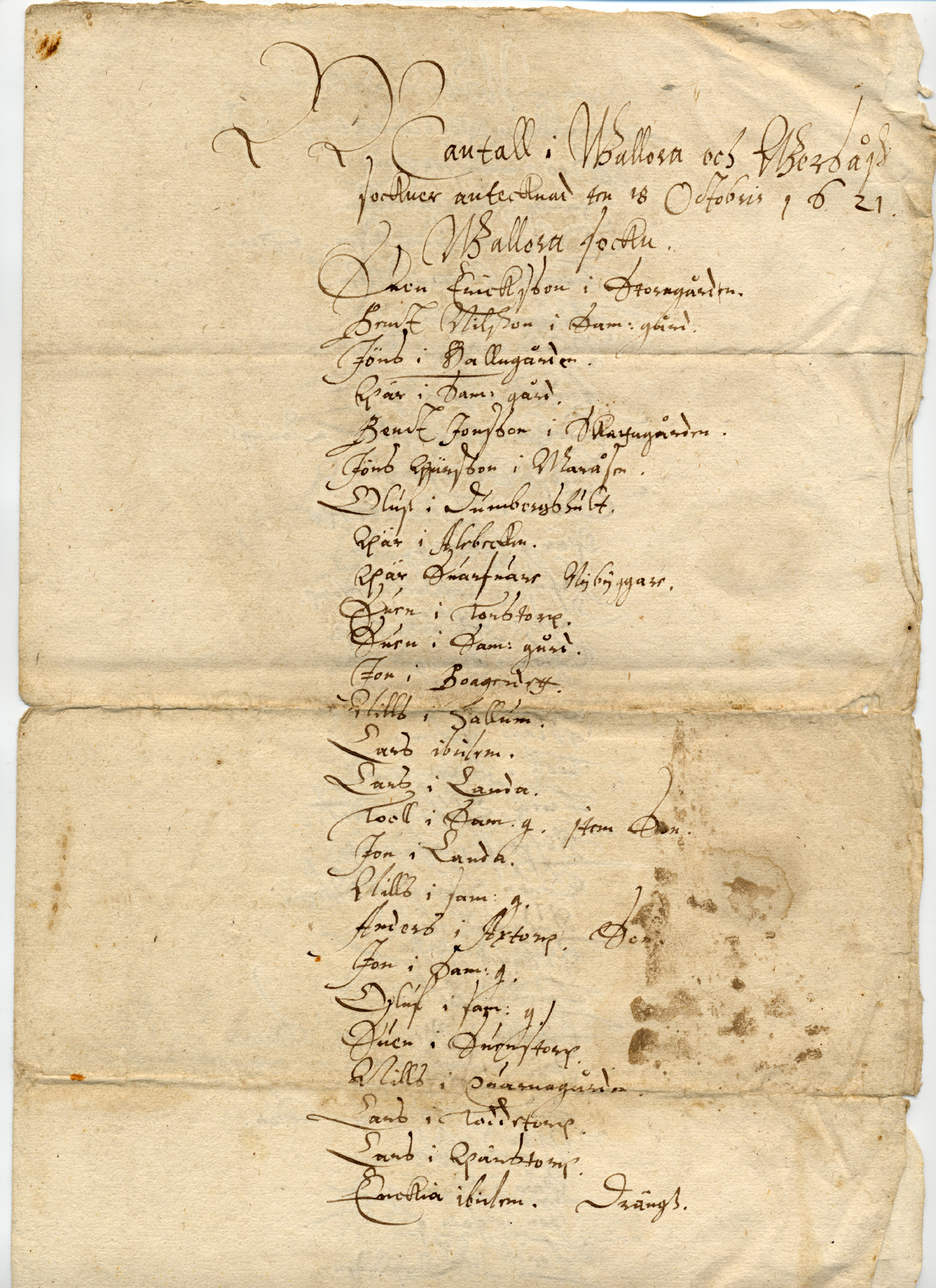 sockner antecknad den 18 Octobris 1621