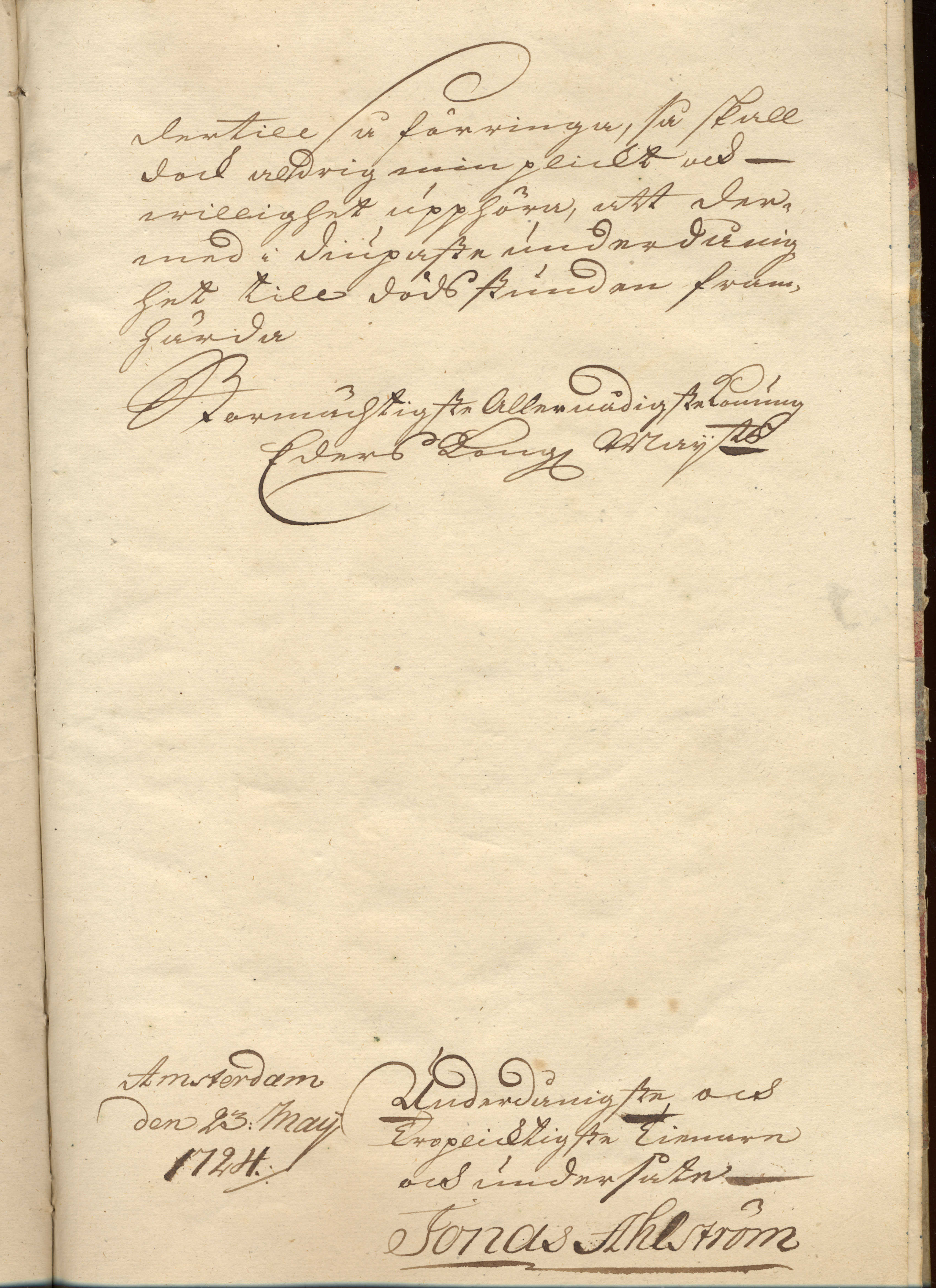 Brev från Jonas Ahlströmer till Kungl. Maj:t 1724 (Östadsarkivet A 152, vol 1) Renskrift av Thomas Selling, Göteborg.