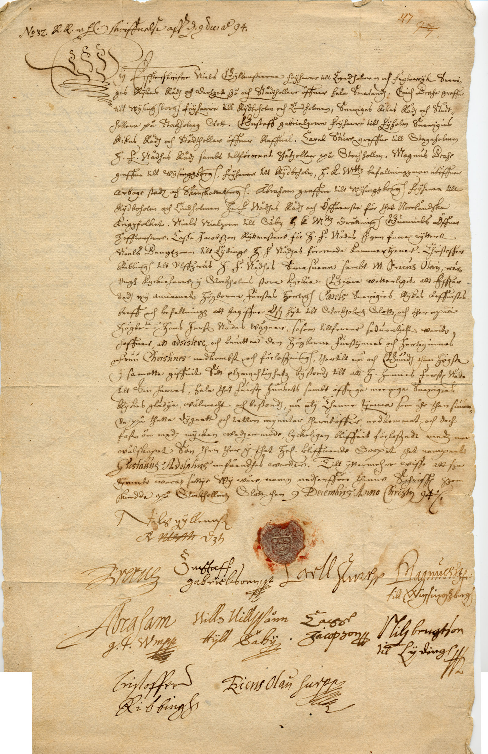 skiedde påStockhollms Slott dhen 9 Decembris Anno Christij 94.