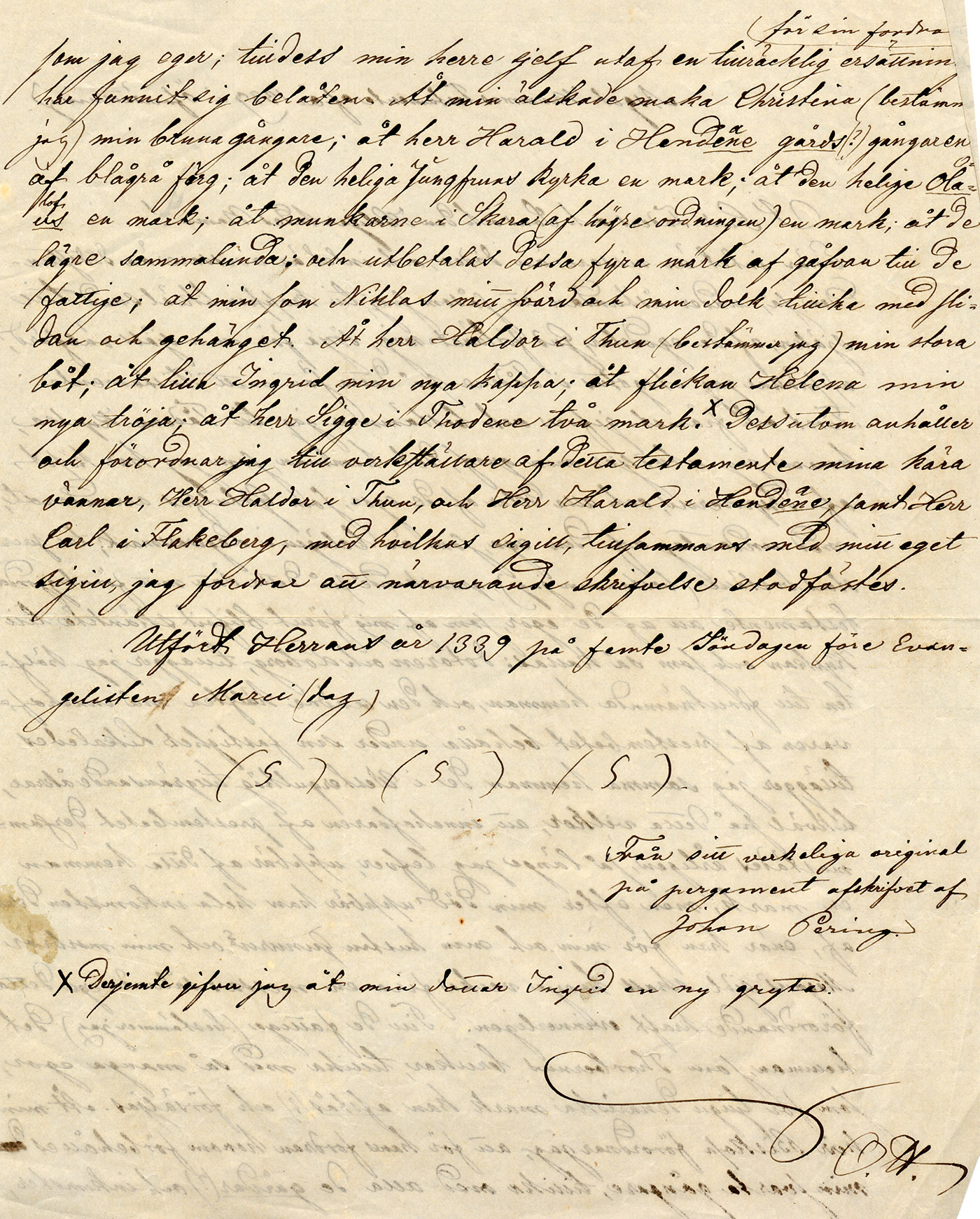 Asgotus Krummes testamente 1339 (Storebergsarkivet C 7, vol 257) Storebergsarkivet utgörs av handlingar från herrgården Storeberg i Tådene församling i Skaraborgs län. Egendomen ägdes av Göteborgs-familjen Kjellberg och ägaren var patronatus till Tådene pastorat Asgotus Krummes testamente finns i gårdsarkivet i flera utgåvor: 1. Gotisk stil 1339 på latin (pergament) 2-3. Latinsk stil 1600- eller 1700-talet på latin 4-6. Tysk stil 1603 på svenska 7-8. Latinsk stil 1800-talet på svenska. Kan du inte latin? Läs dokumentet på svenska (7-8)